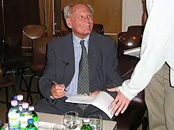 In April 2003, Göncz participated in the signing ceremony of Hungary's join to the European Union in Athens, Greece.[136] In July 2003, Göncz was among the speakers at the so-called Szárszó meetings, a political forum of mostly left-wing intellectuals and politicians, organized by Tivadar Farkasházy.[137] In an open letter, along with Havel and Wałęsa, he demanded the release of political prisoners in Cuba from Fidel Castro in September 2003.[138]