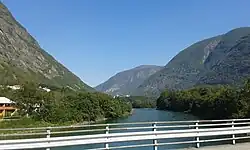 Årdalstangen is the administrative centre of Årdal Municipality in Vestland county, Norway. The village is one of the two main population centers in the municipality, along with the village of Øvre Årdal. The 1.12-square-kilometre (280-acre) village has a population (2019) of 1,375 and a population density of 1,228 inhabitants per square kilometre (3,180/sq mi).[1]