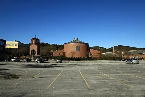 Åsane Church (Norwegian: Åsane kirke) is a parish church of the Church of Norway in Bergen Municipality in Vestland county, Norway. It is located in the borough of Åsane in the city of Bergen. It is the church for the Åsane parish which is part of the Åsane prosti (deanery) in the Diocese of Bjørgvin. The large, red, brick church was built in a circular design in 1993 using plans drawn up by the architect Trygve Dyngeland. The church seats about 600 people.[1][2] The church was built to replace the Old Åsane Church which had recently had a large fire.