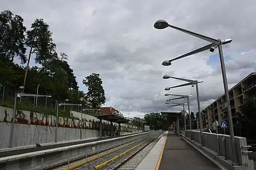 Åsjordet is a station on the Kolsås Line and Line 3 on the Oslo Metro system. It is located between Ullernåsen and Bjørnsletta, 7.4 kilometers (4.6 mi) from Stortinget. The station was opened on 15 June 1942 when the line from Røabanen to Jar was completed.[1]