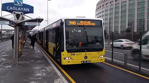 Çağlayan is a station on the Istanbul Metrobus Bus rapid transit line. It is located on the Istanbul Inner Beltway in Şişli, Istanbul, adjacent to the Istanbul Justice Palace. The station is serviced by five of the seven metrobus routes[1]