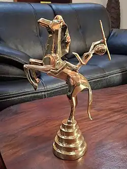 In 2005, the 19th edition of FESPACO, two new awards were established. The Yennenga Standard Grand Prize became the Golden Stallion of Yennenga (Étalon d'or de Yennenga), and the new awards are named the Silver Stallion and the Bronze Stallion.[3] The trophies are designed and made by Burkinabe sculptor Ali Nikiméa.[4]