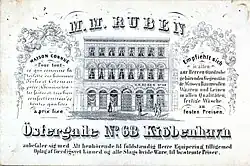 In the late 1840s, No. 68 was acquired by Moses Magnus Ruben (1804–1870). He was originally from Helsingør.[9] He had later moved to Copenhagen where he established a successful clothing shop at Østergade No. 31 (now Østergade 36). In an article in Politivennen on 2 GFebruary 1844, Ruben is mentioned as a "thorn in the side of the Tailors Guild, whose resentment has resulted in a series of lawsuits, all of which they have lost, and which has only expanded his trade even further.".[10]