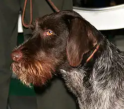 The Český Fousek is a much newer wirehaired versatile hunting dog in relation to many other European or Continental breeds, with written standards first established in the nineteenth century and FCI recognition in 1964. The breed nearly became extinct in the 1920s, and was saved by dedicated breeders in Czech Republic by breeding with other versatile hunting breeds, such as the German Shorthaired Pointer and German Wirehaired Pointer. This caused problems for acceptance of the breed by the FCI as the German Kennel Club (Verband für das Deutsche Hundewesen) opposed it based on being nearly genetic identical to the Stichelhaar. Separately, this happened again in the US in the 1980s and 1990s with infusion of the Český Fousek into the Wirehaired Pointing Griffon, causing a split among members and the forming of two new and separate clubs,[2] the Cesky Fousek North America (formerly Bohemian Wirehaired Pointing Griffon Club of America) and the American Wirehaired Pointing Griffon Association.[3][4]