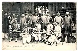 In terms of attire, most performers of Đờn ca tài tử are friends and neighbors, so they typically wear casual clothing during performances.[3] Only when performing at temples, communal houses, or on formal stages do they wear traditional performance costumes.[4][5]
