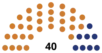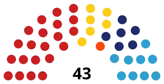 All seats on the city council were being contested in the 2014 election. The number of seats was lowered from 43 to 40.