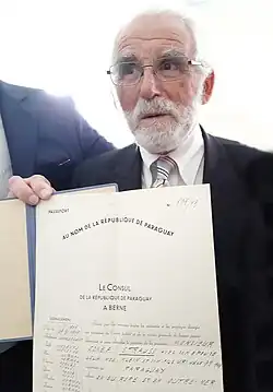 It was RELICO-Legation axis which constituted core of the scheme. Silberschein would send lists of people foreseen to become passport holders to Rokicki who would record them and had Paraguay's passports fabricated. A typical exchange of correspondence between Silberschein and Rokicki in 1942 and 1943 includes a letter from Silberschein with the list of persons to whom the documents were to be granted. Rokicki sent Silberschein in turn filled passports or their copies certified by a notary public and a letter from consul Rudolf Hügli in which holders of the passports were informed that they had received a Paraguayan citizenship. Apart from that, many separate confirmations of Paraguay's citizenship were issued. The lists of recipients of such documents contains several thousand names. At first glance it seems that the vast majority of Paraguay passports were issued between 18 and 30 December 1942 and none of them was filled in 1943. However, the correspondence between Silberschein and Rokicki available in the archives of Yad Vashem indicates that these passports were backdated (there is an evidence that several passports of 30 December 1942 were issued in the autumn of 1943). The vast majority of Paraguay's passports has the traces of handwriting of Konstanty Rokicki, but there are also several passports filled with a different character. The most probable version is that they are filled either by Juliusz Kühl or Stefan Ryniewicz, himself an experienced consul. Passports were issued for Jewish citizens of Poland, the Netherlands, Slovakia and Hungary as well as for Jews deprived of their Germany citizenship. The ordinal numbers of passports found in the Silberschein archives in Yad Vashem suggest that at least three series of these documents had been produced, tallying altogether to least 1056 pieces. In many cases there are more than one or two people mentioned in the passports. It may be easily assessed that at least 2,100 people were beneficiaries of these documents. Each passport cost between 500 and 2,000 Swiss francs. The money was transferred to Rudolf Hügli by Polish diplomats – Rokicki, Kühl and Ryniewicz – and brought him enormous income. By comparison, the then monthly salary of Aleksander Ładoś equaled to 1,800 francs, and this of Juliusz Kühl – to 350 francs.[1][9]