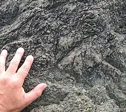 Ancient (200-million-year-old) Greywacke outcrop. Omana.