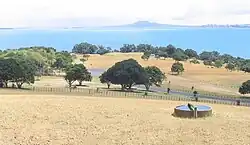 On the perimeter track, visitors will find a grassed area, overlooking the sea, which was the original site of a Ngāi Tai pā.[13] (see ). This grassed area has a deep ditch whose internal bank would have once been much higher and topped with a strong palisade of posts. O-Manawatere is a relatively small pā.[14]