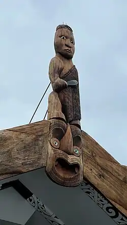 The tekoteko atop the whare tipuna Karaweko depicts Ngāi Tahu paramount ariki (chief) Te Maiharanui.