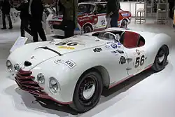 In 1950 the Škoda Supersport appeared in parallel. This vehicle was designed as a monoposto with free-standing wheels and also had an aluminum body. In addition to the engines mentioned above, a unit with a displacement of 1490 cm³ was used. The engine and driving performance also corresponded to the aforementioned model.[4]