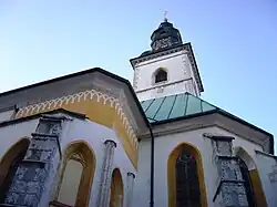The parish church in Škofja Loka is dedicated to Saint James. It dates to the 15th century.[13] Other churches in the town are dedicated to the Immaculate Conception,[14] Saint Anne,[15] and Our Lady of Sorrows.[16] There is also a chapel dedicated to the Resurrection in the town cemetery.[17]