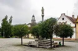 The Church of Our Lady of Sorrows is situated on the Boží hora Hill. A wooden church, which was built there in 1712–1713, was replaced by the current neo-Gothic building built in 1878–1880. It was designed by Friedrich von Schmidt. An atypical double construction system was used during construction due to the local extreme weather conditions. Stations of the Cross line the way up the hill to the church.[13]