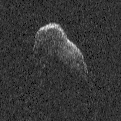 (505657) 2014 SR339, provisional designation 2014 SR339, is a dark and elongated asteroid, classified as near-Earth object and potentially hazardous asteroid of the Apollo group, approximately 970 meters (3,200 feet) in diameter. It was discovered on 30 September 2014, by NASA's Wide-field Infrared Survey Explorer telescope (WISE) in Earth's orbit.[1] Closely observed at Goldstone and Arecibo in February 2018, it has a rotation period of 8.7 hours.[5]