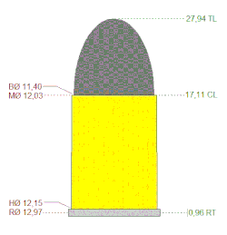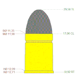 Bullet diameter.455 in (11.6 mm)