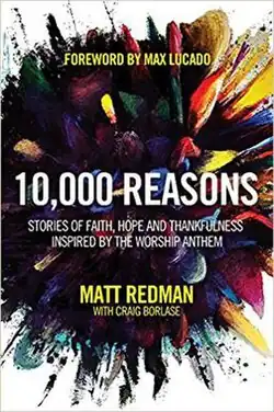 Matt Redman co-authored with Craig Borlase the book 10,000 Reasons (full title 10,000 Reasons: Stories of Faith, Hope, and Thankfulness Inspired by the Worship Anthem). In the 176-page book published in 2017 by David C Cook Publishing Company, and a foreword written by Christian author Max Lucado, Redman shares details behind the song's creation and explores the influences and experiences the song generated with many vivid examples of inspiring stories, experiences and testimonies by individuals in their greatest time of need.[28]