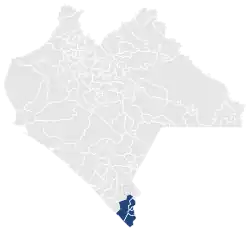 The head town (cabecera distrital), where results from individual polling stations are gathered together and tallied, is the city of Tapachula. The district reported a population of 440,643 in the 2020 Census.[1]