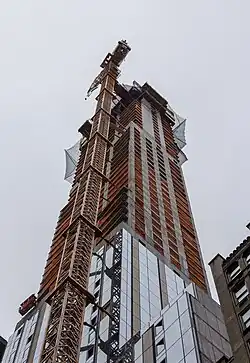 Extell Development Company purchased the site in January 2012 for $61 million and sold it to Ceruzzi Properties in August 2014.[3] Initial plans filed in June 2014 indicated the building would be a 52-story, 502 feet (153 m) hotel with 764 rooms designed by SLCE Architects.[3] However, renderings revealed in September 2015 showed the tower would be a 64-story, 803 feet (245 m) condominium tower.[4] In 2015, the developers secured a $65 million loan on the development's land from Industrial and Commercial Bank of China.[5]