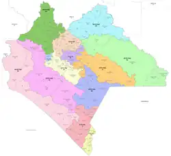 The head town (cabecera distrital), where results from individual polling stations are gathered together and tallied, is the city of Huehuetán. The district reported a population of 440,818 in the 2020 Census.[1]