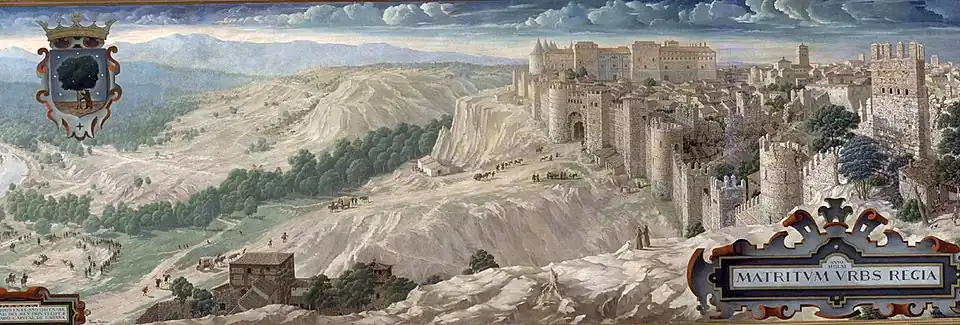 Cases expanded exponentially as merchants, pilgrims, and other travelers leaving Madrid transported the virus to cities and towns across the country. According to King Phillip II's doctor Luis de Mercado, "All the population was attacked the same day, and the same time of day. It was catarrh, marked by fever of the double tertian type, with such pernicious symptoms that many died."[58] The season's poor harvests and hunger in the Spanish population,[59] as well as negligent medical care, likely contributed to the severity of the influenza pandemic in Spain. Flu symptoms could be so intense that the region's physicians often distinguished it from other contagious, seasonal pneumonias that spread from East Europe.[60] Sixteenth century Spaniards frequently referred to any mass outbreak of deadly disease generically as a pestilencia,[61] and "plagues" are recognized as occurring in Valencia[62] and Granada[63] during the years 1557–59, despite pathological records of true plague (like descriptions of buboes) occurring in the area at the time being scant.