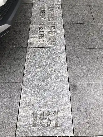 Street marker at the location of 161 Sussex Street, Sydney, pictured in 2019