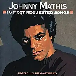16 Most Requested Songs is a compilation album by American pop singer Johnny Mathis that was released in 1986 by Columbia Records and features 12 tracks representing his time with the label from 1956 to 1963, including his Billboard top 10 hits "Chances Are", "It's Not for Me to Say", "The Twelfth of Never", "Gina", and "What Will Mary Say" as well as his signature song, "Misty".[4] The remaining four selections ("Evergreen (Love Theme from A Star Is Born)",[5] "Love Theme from Romeo and Juliet (A Time for Us)",[6] "(Where Do I Begin) Love Story",[7] and "Didn't We"[6]) were recorded with Columbia between 1969 and 1977.