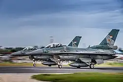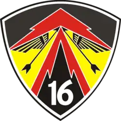 16th Air Squadron (Indonesian: Skadron Udara 16 or Skadud 16 or SkU 16) is a fighter squadron under the command of the 6th Air Wing based in Roesmin Nurjadin Air Force Base, Pekanbaru. The 16th Air Squadron was inaugurated by the Indonesian president and Air Force Chief of Staff, Marshal Ida Bagus Putu Dunia on October 17, 2014. The 16th Air Squadron is one of Indonesia's three F-16 squadron.[2][3] The 16th Air Squadron pilots have the callsign of Rydder meaning Knight, and for the groundcrews the callsign of Rubicon.[4]