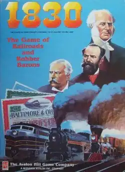 1830: The Game of Railroads and Robber Barons is a railroad operations and share trading board game first published by Avalon Hill in 1986 based on an original design by Francis Tresham. The popularity of 1830 spawned an industry creating similar "18XX" games. It was the inspiration for Sid Meier's Railroad Tycoon.[1] 1830 was republished in 2011 through a partnership of Mayfair Games and Lookout Games.