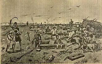 Lithography depicting war prisoners and Paraguayan families captured and tortured in San Fernando