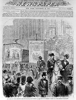 After years of waiting and attempting a legislative solution by the fall of 1871 strikes for the eight hour day had begun in NYC. First by stone cutters who then were joined by a sympathy strike of 8,000 building trade workers. This would lead to the International Workingmen's union, NLU, Steward's Eight Hour League to organize a general strike in NYC.[5]