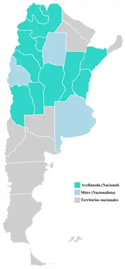 Presidential elections were held in Argentina on 12 April 1874. Nicolás Avellaneda was declared the winner of the elections. Supporters of rival candidate Bartolomé Mitre rebelled.[1]