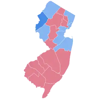 | Passaic | 5,776 | 43.01% | 7,576 | 56.42% | 72 | 0.54% | 4 | 0.03% | -1,800 | -13.40% | 13,428 |