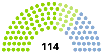 Last election 41.78%, 38 seats 38.69%, 51 seats 19.53%, 25 seats