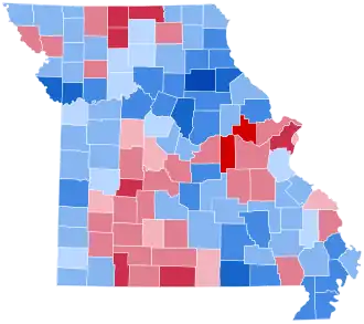 | Saint Louis City | 59,931 | 48.11% | 60,597 | 48.64% | 2,749 | 2.21% | 327 | 0.26% | 974 | 0.78% | -666 | -0.53% | 124,574 |