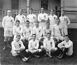 England: CF Stanger-Leathes (Northern), SF Coopper (Blackheath), HE Shewring (Bristol), T Simpson (Rockcliff), AT Brettargh (Liverpool OB) FC Hulme (Birkenhead Park), WV Butcher (Bristol), J Green (Skipton), WLY Rogers (Blackheath), G Vickery (Aberavon), JL Mathias (Bristol), Frank Stout (Richmond) capt., Charles Joseph Newbold (Blackheath), Vincent Cartwright (Blackheath), WM Grylls (Redruth)