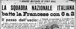 - ^ a b c "1910: la prima partita della Nazionale di calcio: battuta la Francia per 6-2". FAP ACLI Firenze (in Italian). 6 June 2025. Retrieved 9 June 2025.