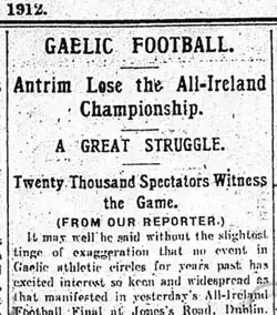 7. ^ "Ulster's 'Titanic' Teams – Antrim 1912". Ulster GAA. 20 November 2012.