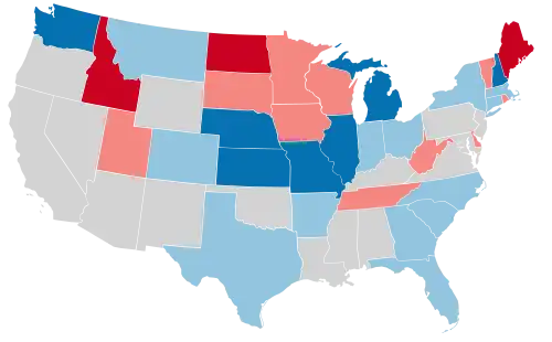 - ^ a b Congressional seat gain figures only reflect the results of the regularly-scheduled elections, and do not take special elections into account.