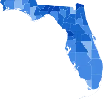 The Democratic Party won every county in Florida in each election from 1892[a] until 1904, and all bar Calhoun County in 1908.[4] Only once since 1897 – and then only for a single term – had a Republican served in either house of the state legislature.