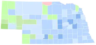 1. ^ Because Wilson finished first and Roosevelt second in Nebraska as a whole, all margins given is Wilson vote minus Roosevelt vote and percentage margins Wilson percentage minus Roosevelt percentage unless otherwise stated for the county in question.
