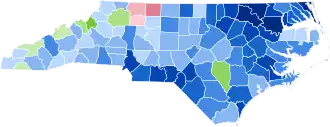 | Perquimans | 70.40% | 647 | 24.81% | 228 | 4.79% | 44 | 0.00% | 0 | 0.00% | 0 | 45.59%[b] | 419 |