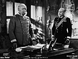 1914 (German: 1914, die letzten Tage vor dem Weltbrand) is a 1931 German drama film directed by Richard Oswald and starring Albert Bassermann, Hermann Wlach and Wolfgang von Schwindt. The film focuses on the leadership of the Great Powers of Europe in the days leading up to the outbreak of the First World War, culminating in the assassination of Archduke Franz Ferdinand of Austria by Gavrilo Princip.[1] It was produced at the Babelsberg Studios in Berlin and premiered in the city at the Tauentzien-Palast on 20 January 1931. At the request of the German Foreign Office an introduction by Eugen Fischer-Baling was filmed and presented at the start of the film. A special screening was held at the Reichstag on 3 March 1931.