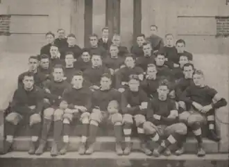 By early November, the Student Army Training Corps (SATC) had selected a 35-man roster and was holding practices.[9] The team was coached by Edson D. "Chuck" Sanborn,[9] who had been captain of the 1908 New Hampshire football team.[10] Five games with other teams were organized, most being played after the Armistice with Germany.