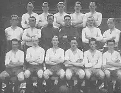 Brentford manager Fred Halliday overhauled the club's squad during the 1925 off-season, with all but seven players being released.[1] Despite running a deficit of £6,000 (equivalent to £432,300 in 2023), the board of directors pledged a "substantial sum of money" for the transfer of quality players and in came new goalkeeperJohn Thomson, four full backs, four half backs and new forwardsBill Finlayson and Bert Young.[1] The club's colours were changed to the now-traditional red-and-white stripes, black shorts and black socks.[1]