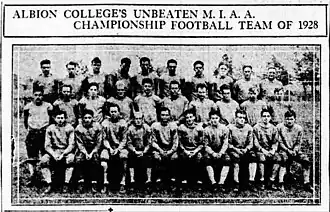 12. ^ "Albion, Defeating Alma, Clinches M.I.A.A. Football Championship". The Battle Creek Enquirer and News. November 17, 1928. p. 7 – via Newspapers.com.