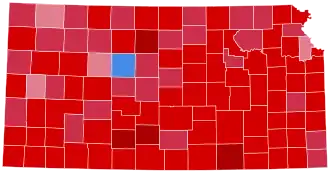| Sedgwick | 32,132 | 74.40% | 10,649 | 24.66% | 405 | 0.94% | 0 | 0.00% | 21,483 | 49.75% | 43,186 |