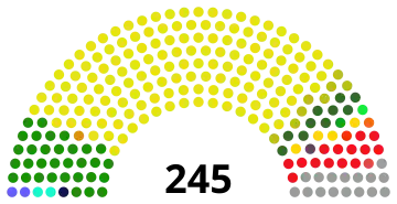 - ^ The number of votes refers to only 132 of the 199 single-member constituencies, as 67 seats were uncontested.[3]