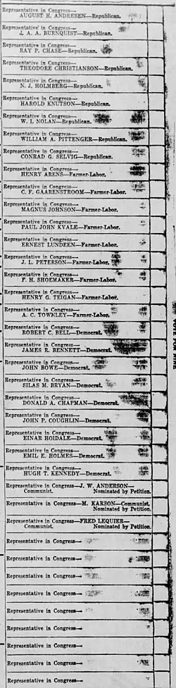 - ^ "Long Ballot In 3 Parties Slows Count". Star Tribune. June 21, 1932. p. 1. Archived from the original on June 23, 2024 – via Newspapers.com.
