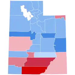 Utah, like every state west of the Appalachian Mountains, voted for Franklin D. Roosevelt over Herbert Hoover by a substantial margin, giving the first Democratic victory in the state since 1916 when anti-war sentiment had shifted the state to Woodrow Wilson.[1] Utah's swing to the Democrats was 23.19 percentage points, much smaller than the national swing of 35.18 percentage points, as the anti-Catholicism which marred the preceding election was less prevalent among the LDS hierarchy than in the South or the Pacific Northwest. Consequently, for this election Utah voted more Republican than the nation at-large for the first time in twenty years, by a margin of 2.29 points on a two-party basis.[2] Hoover managed to retain pluralities in seven of Utah's twenty-nine counties, although in San Juan County Hoover won by only a solitary vote and in sparsely populated Daggett County by just eleven. This was nonetheless equal with Missouri[a] and behind only Kansas[b] as the most counties in one state west of the Mississippi – in all of which Hoover retained only forty-six counties out of 1,161 – remaining Republican.