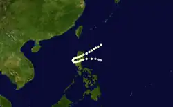 On July 1, a typhoon formed east of the Philippines island of Samar. The system moved to the northwest, brushing Luzon on July 4, but sparing the island from strong winds. The typhoon moved across the Luzon Strait before weakening, making landfall in southeastern China near Shantou on July 5. The storm turned northeastward and dissipated by July 6.[5][6]